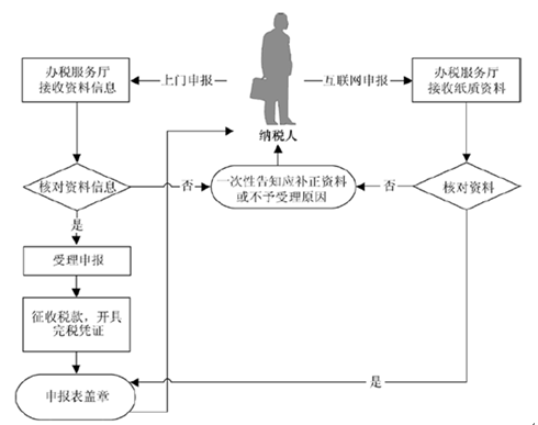 (4)办税服务厅人员在相应纳税申报表上签名并加盖业务专用章,一份返还纳税人,一份作为资料归档,一份作为税收会计核算的原始凭证。